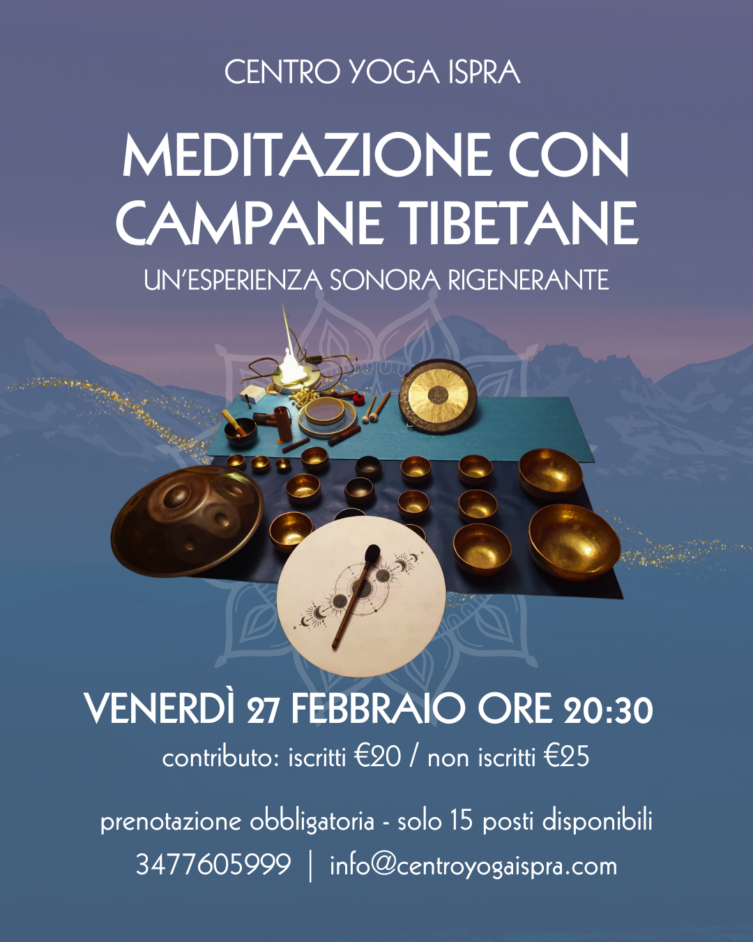 venerdì 19/01/2024 alle 20:45 ci sarà la possibilità di fare una meditazione con campane tibetane. Il costo è di euro 20 di cui 10 da versare al momento della prenotazione (OBBLIGATORIA)